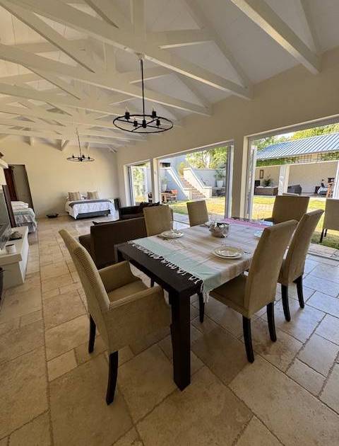 At the heart of the villa lies a serene pool area – your personal sanctuary for sun-soaked days and tranquil evenings. Framed by beautiful gardens and panoramic views of the ocean, the sparkling infinity pool invites you to unwind in style. Whether you're floating under the African sun, sipping cocktails on a lounger, or enjoying a candlelit dip beneath the stars, every moment here is designed to soothe and spoil. While parents relax with a perfectly mixed cocktail, kids can splash and play in the pool, creating laughter-filled memories under the warm African sky.